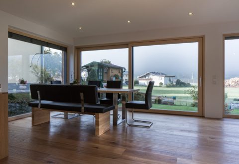 Schiebetüren werden mit einem speziellen Mechanismus und Standardprofilen hergestellt. Nach dem Drehen des Griffs bewegt sich der Fensterflügel senkrecht zum Fenster, in den Raum hinein, und dann zur Seite. Die maximalen Abmessungen von PSK-Türen betragen 160 x 200 cm oder 140 x 230 cm. Der große Vorteil dieser Lösung ist die hohe Dichtigkeit und Erschwinglichkeit. Die Nachteile können die Schwelle in Form eines Fensterrahmens und Probleme beim Öffnen und Schließen der Flügel sein, die bei unsachgemäßem Gebrauch auftreten können. Dank dieser Lösung können wir eine große, verglaste Fläche schaffen, ohne die Funktionalität der Räume zu beeinträchtigen, da PSK-Fenster den Raum in der Mitte nicht einnehmen.