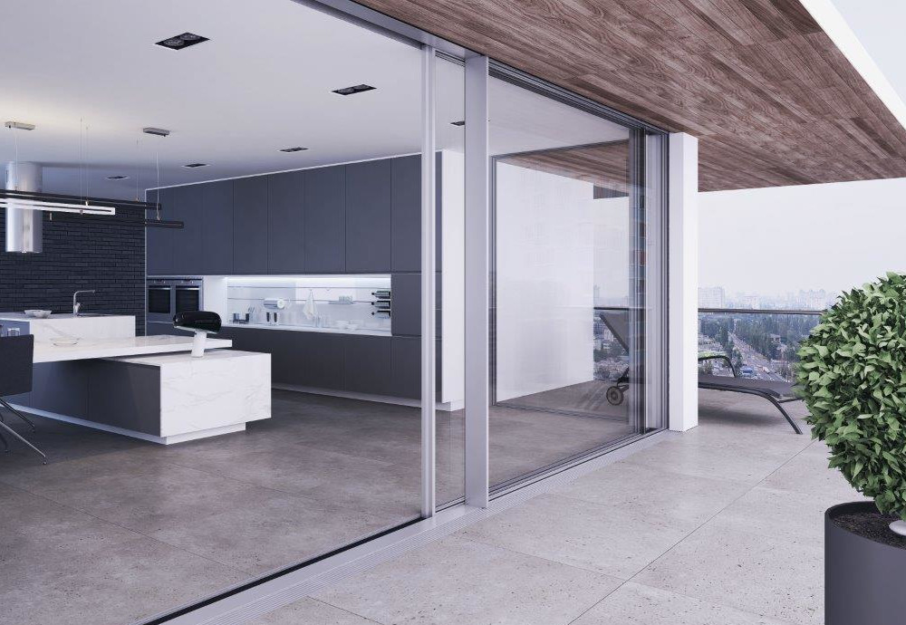 Das Schiebetürsystem „TOMORROW“ (mit verdecktem SKYLINE-Rahmen) basiert auf schmalen Profilen und sorgt für ein sehr minimalistisches Aussehen. Die Rahmen sind im Boden und an der Decke versteckt. Dank der sehr schmalen Fugen der Flügel (nur 25 mm) erhalten wir eine nahezu perfekte, gleichmäßige Verglasung. Dieses Schiebefenster kann bis zu 4 Meter hoch sein, was einen spektakulären, beispiellosen Effekt ergibt.